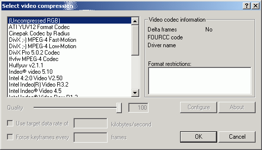 have to enter a name for your frameserving .avi file, e.g., "test.avi"