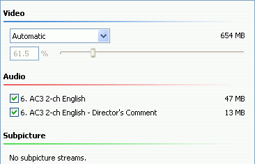 You can do the same for subtitle streams, but the size gain is not as impressive as when you deselect an audio stream.