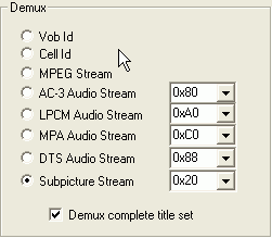 Subpicture Stream and select the appropriate substream ID, check Demux complete